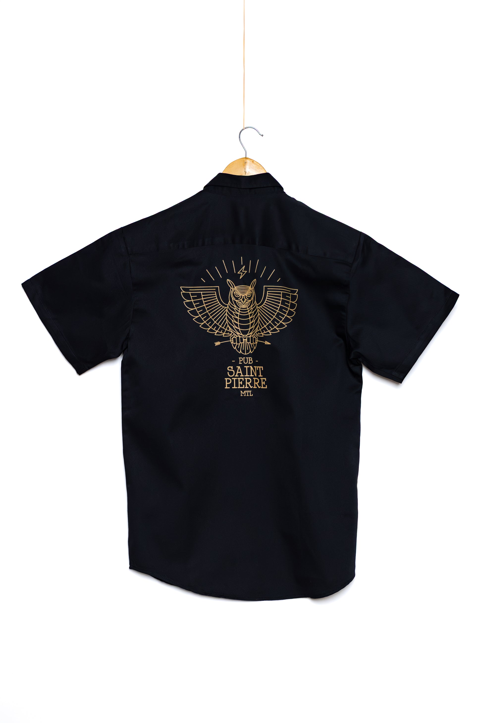 This Gatts work shirt features our bear graphic on the front and our iconic owl logo on the back. Ideal for those who love classic workwear, it’s a tribute to Pub Saint Pierre’s hardworking and spirited ambiance. If you've been to the Pub, you've certainly seen Vaughan wearing one... he practically lives in them!
